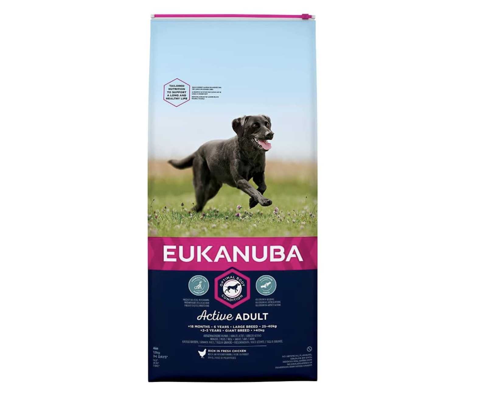 Eukanuba Adult para perros de razas grandes es un alimento seco de alta calidad formulado específicamente para perros adultos con un peso superior a los 25 kg y un nivel de actividad medio. Su receta equilibrada ayuda a mantener una condición física óptima, aportando la energía necesaria para el día a día y favoreciendo una vida activa y saludable.